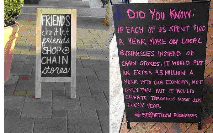 Shopping locally does not necessarily mean purchasing from a neighborhood store. It’s a way of supporting a community and lowering costs and environmental impact of purchasing an item from across the country or the globe, helping to reduce gas emissions and environmental damage. Since local businesses tend to purchase from other local businesses, supporting them helps minimize the environmental impact of transporting out-of-town goods. Independent local businesses employ a wide array of supporting services including architects, designers, cabinet shops, sign makers and contractors. Opportunities grow for local accountants, insurance brokers, computer consultants, attorneys, advertising agencies and others to help run it. Local retailers and distributors also carry a higher percentage of locally-made goods than the chains, creating more jobs for local producers.